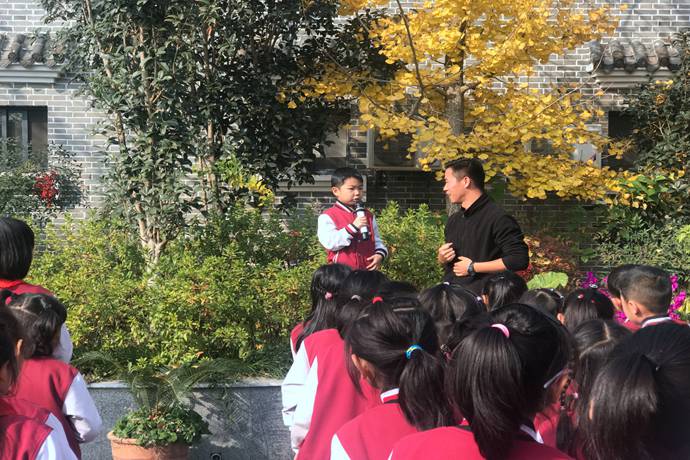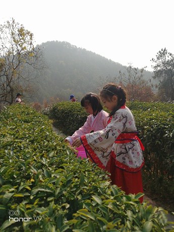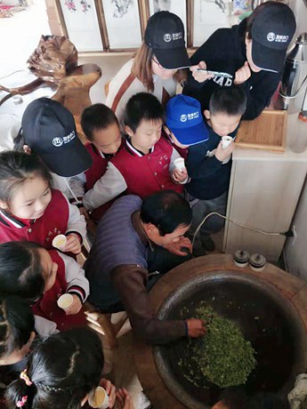 天成大院的后院是一片茶园,这里绿意盎然,茶香弥漫。孩子们身着汉服,徜徉其中,在茶树枝头寻觅娇嫩的绿芽,一捏一提一放,几个简单的动作,就将嫩茶尖儿撷入囊中。听茶道、闻茶香、品茶汤、观炒茶,孩子们连声夸香,啧啧称奇,第一次零距离全过程感受了传统茶文化。此刻他们播种的是好奇,收获的是传承。