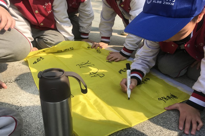 为了增加竞争的乐趣,每个班分成了三个小队。在书院活动场上,毛遂自荐的队长竞选人为了“推销”自己以提高竞争力,纷纷喊出口号:“我要当队长!我要带领我们队取得最终胜利!”“我也要当队长!我要带领大家越走越远,越来越强!”充满自信的演讲赢得阵阵掌声,斗志昂扬的精神瞬间点燃激情。没过多久,三名小队长便走马上任了,他们领着各自的队员一起制作了队旗,喊着口号宣示必胜的信心。