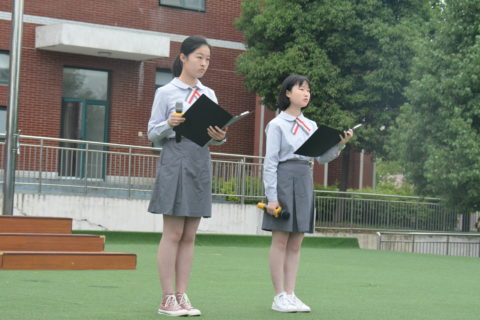 担任本周升旗仪式的班级是八(2)班,升旗手是张锦东、聂子博同学,护旗手是石开、杨俊武、蒋子玺、陈豪渔同学,主持人是王慕婕、周佳琢同学。
