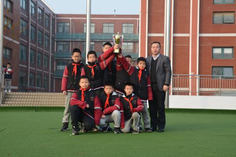 2019年11月30日在青少年篮球公开赛武汉赛区,我校篮球健儿顽强拼搏、奋勇争先,经历了7个周期,8轮比赛,最终取得U10组别季军的好成绩,他们是:单勇翰、唐述川、严念昆、黄思辰、夏泽辰、许皓涵、田源、刘艺航、胡运生。之后由黄校长对以上同学进行颁奖。