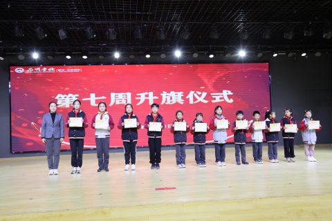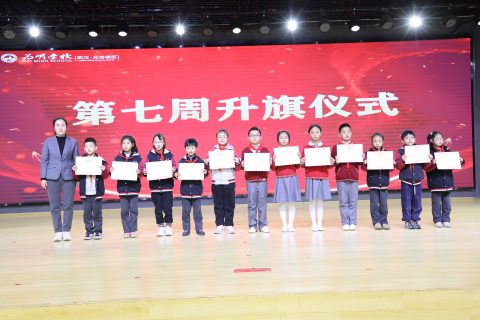 接下来德育值周教师吴涛老师,对上一周德育常规做出总结,并由小学部徐晨主任对上周获得“为明之星”的班级颁奖。他们是:一年级组:优一(2)班、优一(6)班;二年级组:优二(3)班、优二(4)班;三年级组:国三(2)班、优三(1)班;四年级组:优四(4)班、优四(5)班;五年级组:优五(2)班、优五(7)班 ;六年级组:优六(1)班、优六(5)班。