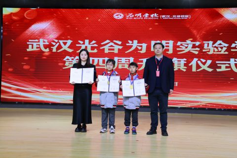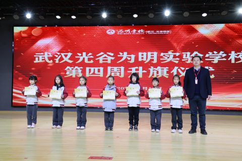 接下来值周教师吴涛老师,对上一周德育常规做出总结,并由小学部小学部郭雪副校长对上周获得“为明之星”的班级颁奖。他们是: