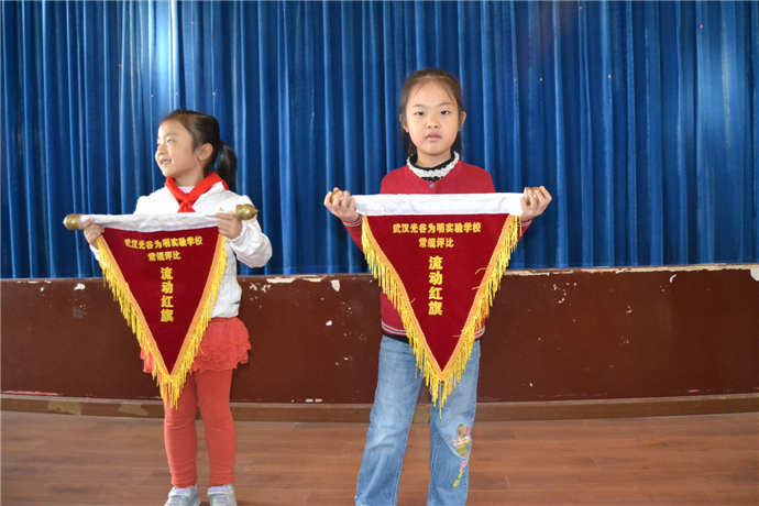 晨会由大队委戴梦佳担任主持,由五年级付潇潇同学进行晨会演讲。随后任主任宣布上周获得流动红旗的班级:一(1)班、二(1)班、三年级、五年级,并提出几点要求:1.期中将近,同学们要好好准备;2.周一必须佩带红领巾。最后小学部第九周晨会在一片掌声中结束。