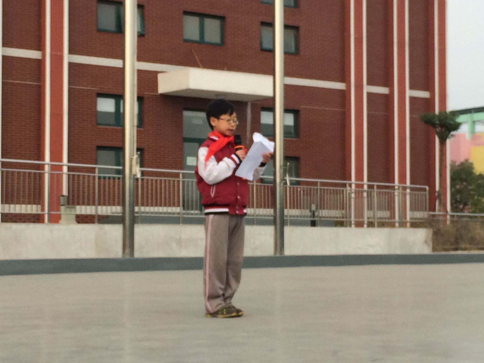 升旗仪式由大队委刘宇轩、李锦云担任主持,升旗手是四年级(1)班的张亦奕同学和耿昊达同学,他们在班级中团结、关心同学,学习刻苦,工作认真负责,在各方面有较强的自律意识,是同学们学习的楷模。本次升旗仪式由刘亦晨进行国旗下讲话。刘亦晨同学讲话的主题是《讲文明讲礼仪 建和谐校园》,并呼吁同学们一起努力,讲文明礼仪,建和谐校园!随后四年级(1)班全体同学朗诵《太阳,你好!》。随后曹主任为上周各班表现进行小结。最后第十二周升旗仪式在一片掌声中结束。