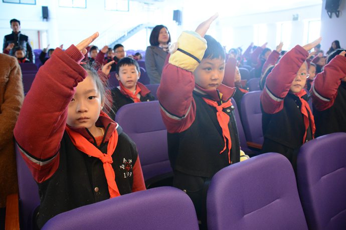 全体师生认真领会讲话内容,在庄严的为明誓词中结束了本周升旗仪式。