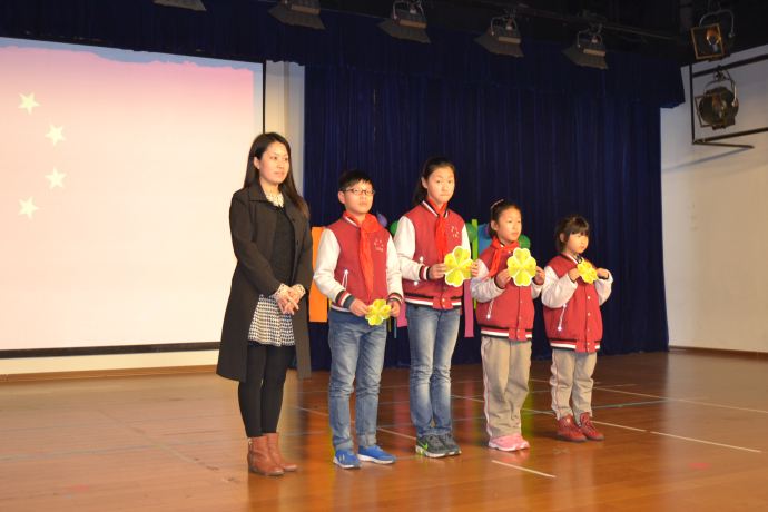 最后,德育主任曹主任从安全、卫生、行为习惯等方面进行了德育小结,并宣布了上周获得“为明之星”二(1)、五(1)和“进步之星”一(1)、六(1)班,由语文组组长陈元花老师为获奖班级颁奖。