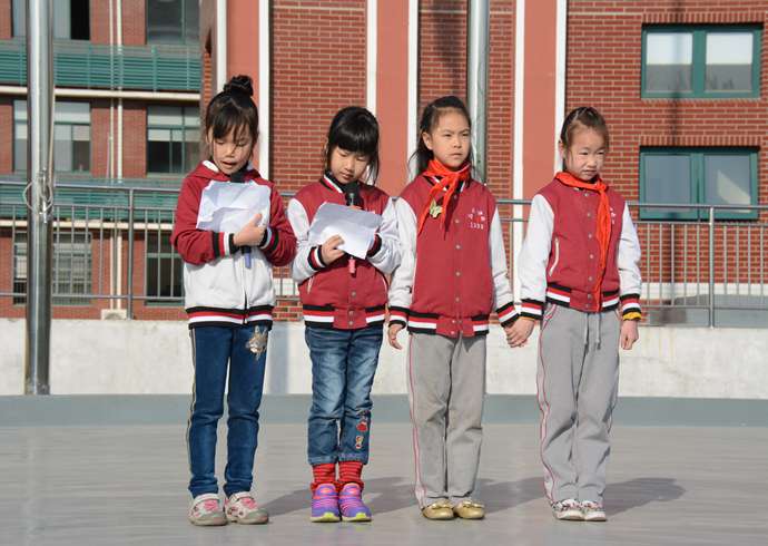 升旗手:付潇潇,陈枫扬;护旗手是来自四(1)班:倪浩博,耿昊达,刘奕璇,程诗凯。 。