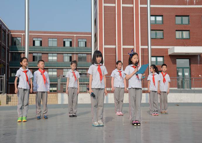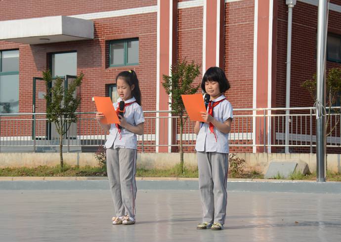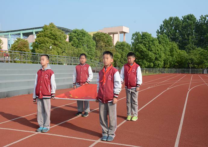 升旗手:刘宇轩、陈枫扬;护旗手是来自四年级国旗班。