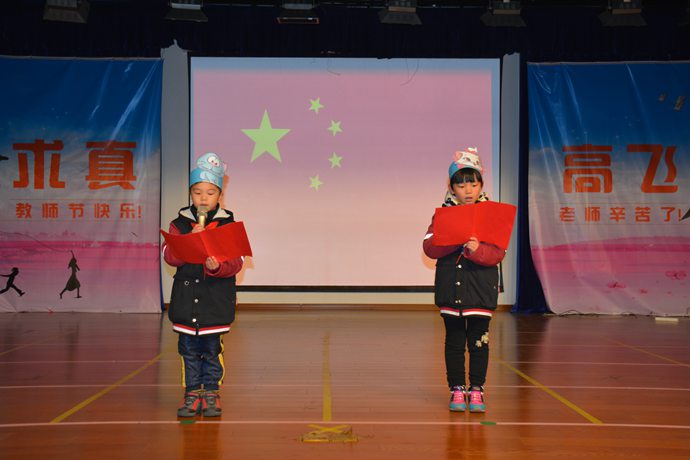今天是2015年12月21日,优米娱乐app全体师生在礼堂进行了第十七周升旗仪式。承担本次升旗仪式的班级是国一(2)班。主持人:费子翔、林木木。