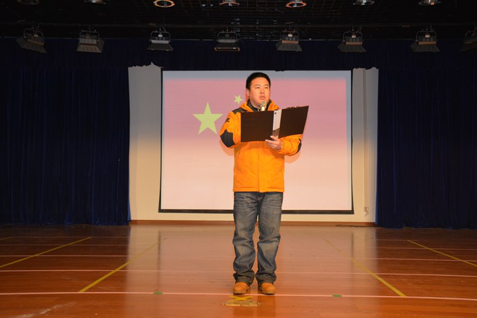 今天是2016年1月12日,优米娱乐app全体师生在礼堂进行了第二十周升旗仪式。承担本次升旗仪式的班级是优质一年级(3)班。主持人:杨文奕、张楠玥。