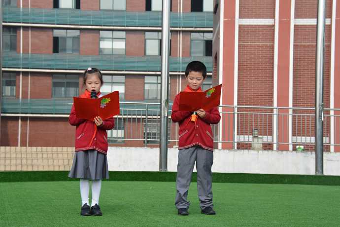 接着由优质一(2)班的全体同学带来精彩的国旗下讲话。通过全班每人一句的朗诵,将爱心的种子传递下去,播撒在学生们的心里。